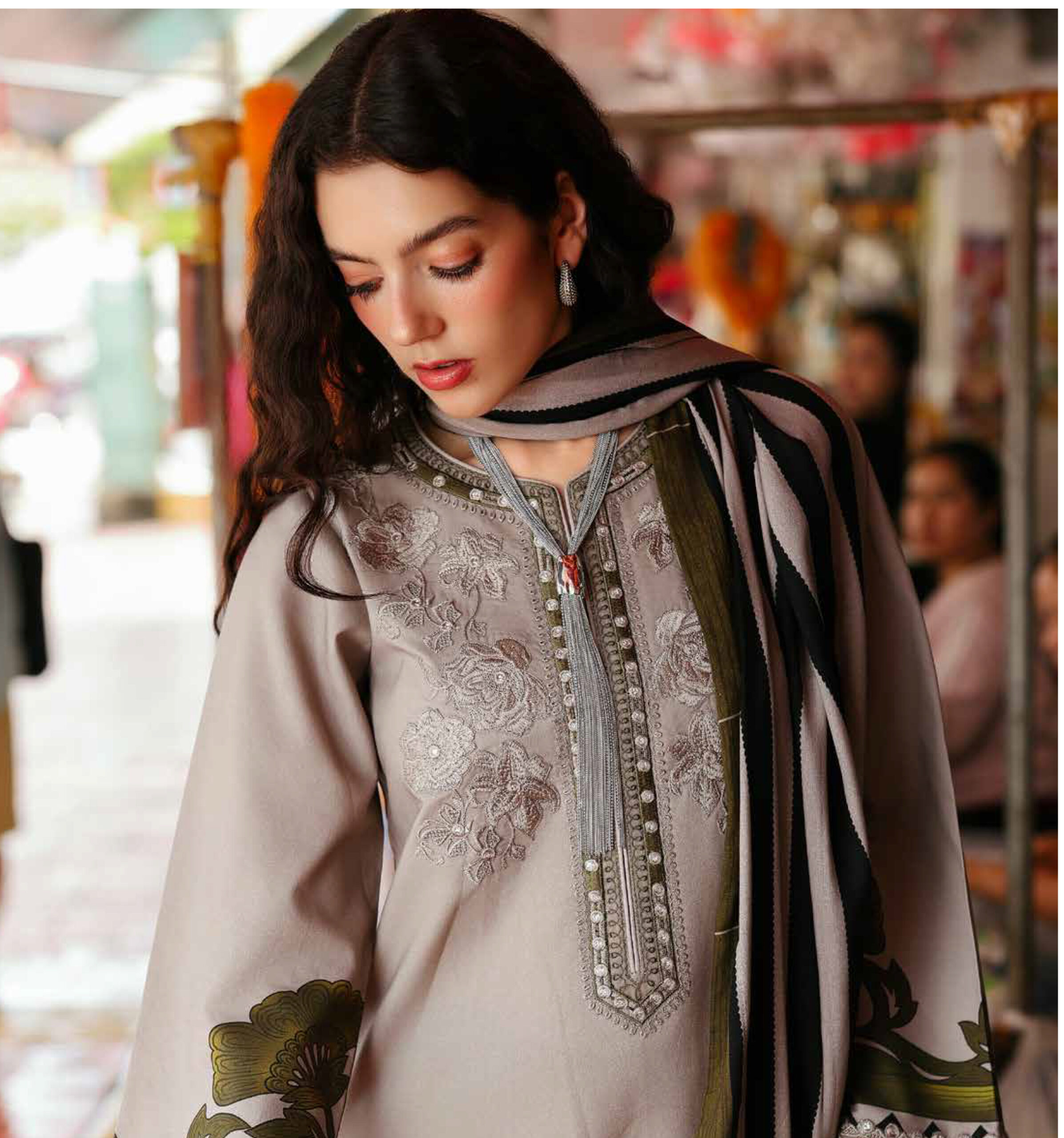 EMBROIDERED LINEN WITH EMBROIDERED IRISH LINEN SHAWL