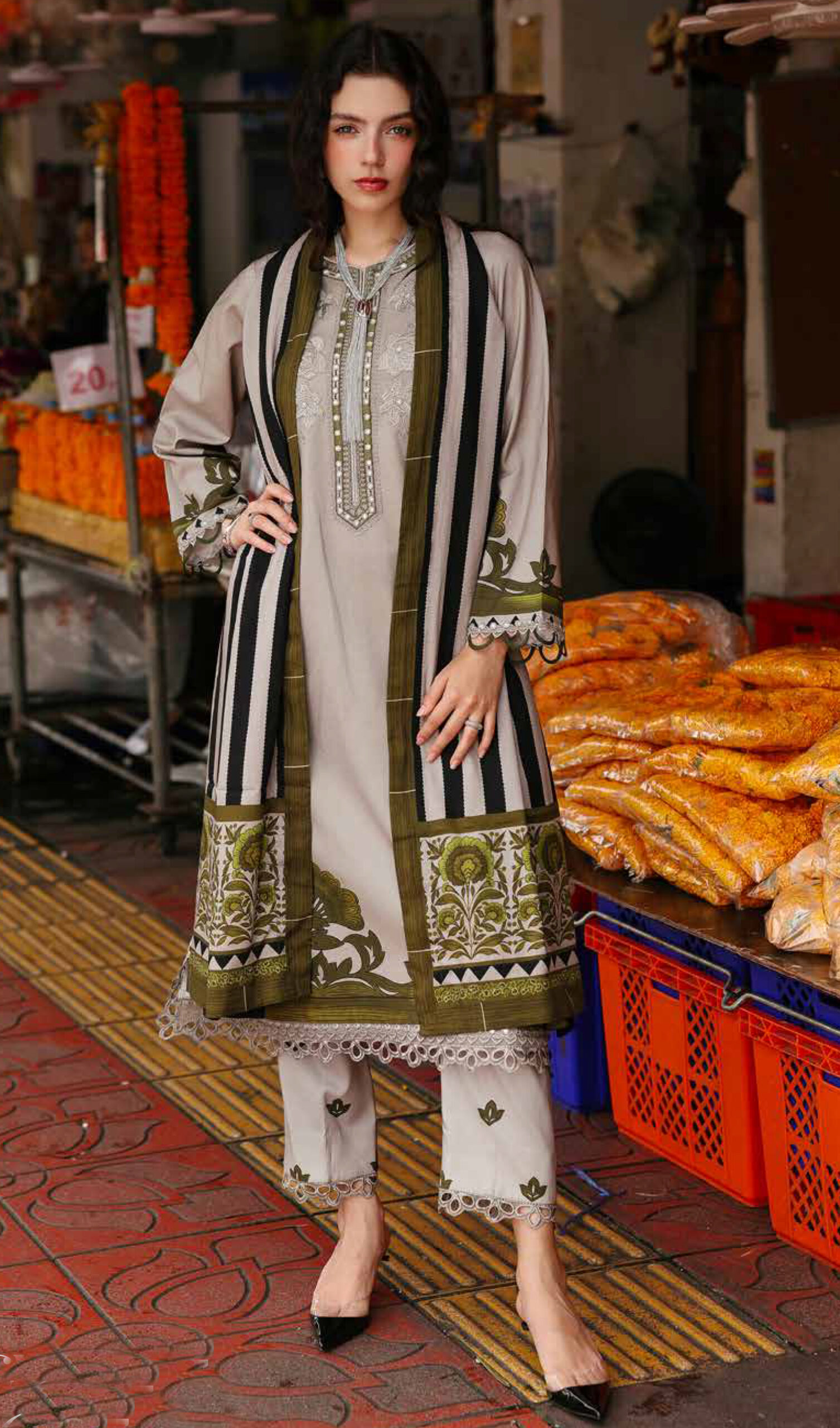 • Front & Back: Embroidery Chok Patti 4.50 Meter