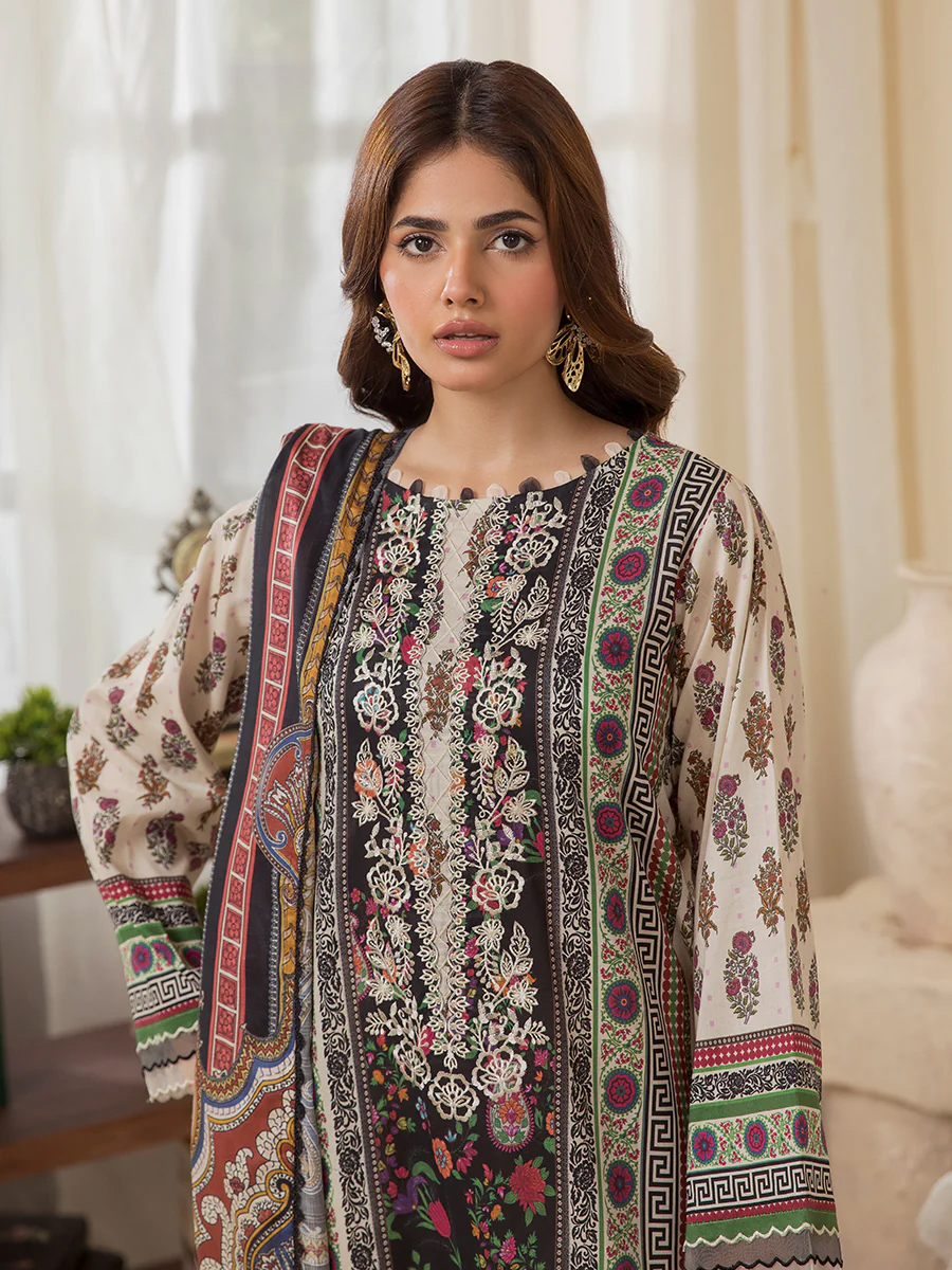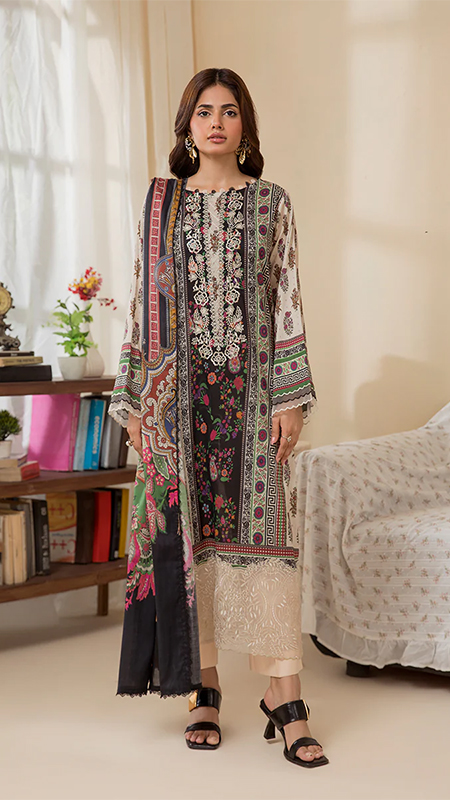 Front: Digital Printed Lawn Neck Embroidered