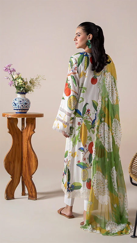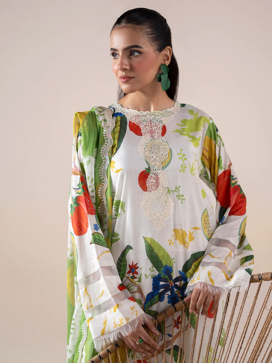 Dupatta: Digital Printed Bamber Chiffon Sequin Embroidered Cut-work