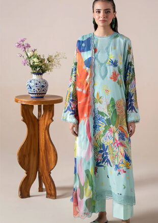 Dupatta: Digital Printed Bamber Chiffon Sequin Embroidered Cut-work